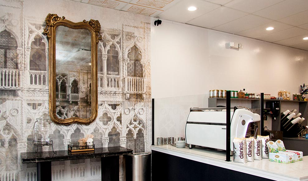 Projects - Food & Beverages Coffee Shop | Torrance, CA All Interiors: Floors, Walls, Finishes, Furniture & Project Management. "Bring the Beauty of Venice, Italy to Torrance." Discuss Your Project! Request Appointment