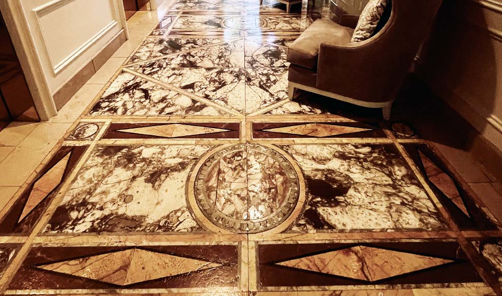 Projects - Hospitality Hotel | Beverly Hills, CA Design Consulting, Layout and Installation. Main Lobby Elevators. Antique Marbles Selection. Shop Drawing and Inlaid panels made in Italy. Discuss Your Project! Request Appointment